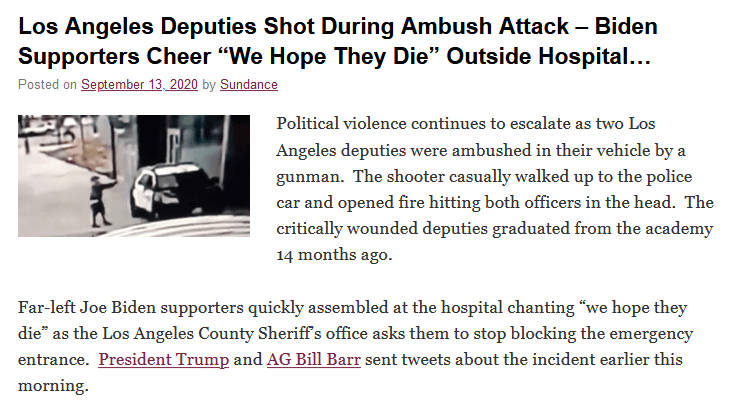 BLM – Burn, Loot, Murder Reportér Pastelka Kvokání 14.9.20205.2.2022 https://theconservativetreehouse.com/2020/09/13/los-angeles-deputies-shot-during-ambush-attack-biden-supporters-cheer-we-hope-they-die-outside-hospital/#comments Sluníčka z BFLM řádily v LA. Sdílej: Tisk (Otevře se v novém okně) Tisknout Líbí Načítání... Publikoval Reportér Pastelka The Freedom Herald https://thefreedomherald.com Zobrazit všechny příspěvky, jejichž autorem je Reportér Pastelka Publikováno 14.9.20205.2.2022