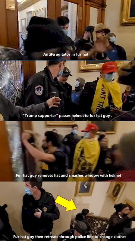 Kolem Kapitolu byla mobilní bariéra, která oddělovala lid od policistů. Lid stál a podle hlášení skupiny vojáků veteránů, tak se sice pokřikovalo, skandovalo, ale nikdo nečinil nic špatného. Pak někteří policisti mínili, že je potřeba lid zpacifikovat a tak je začali plácat pendrekama. Lid se začal bránit a tak lid zapepřovali. Lid se rozpálil a jelikož to nebyli kriminálníci, jako ti co vypalovali celý rok města, ale hodně bývalí vojáci a policisti, odebrali policistům pendreky a vraceli jim, co dostali. Tím se rozpadla linie a lid pak postupoval ke Kapitolu.
